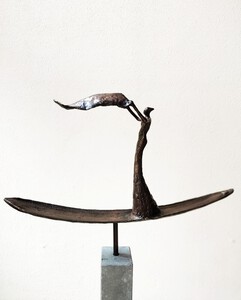 2023Bronzen beeld unicum. Vrouw boot vleugels op sokkel 8-8-73 cm Naar gedicht Ithaka, reis van je leven. Verkocht