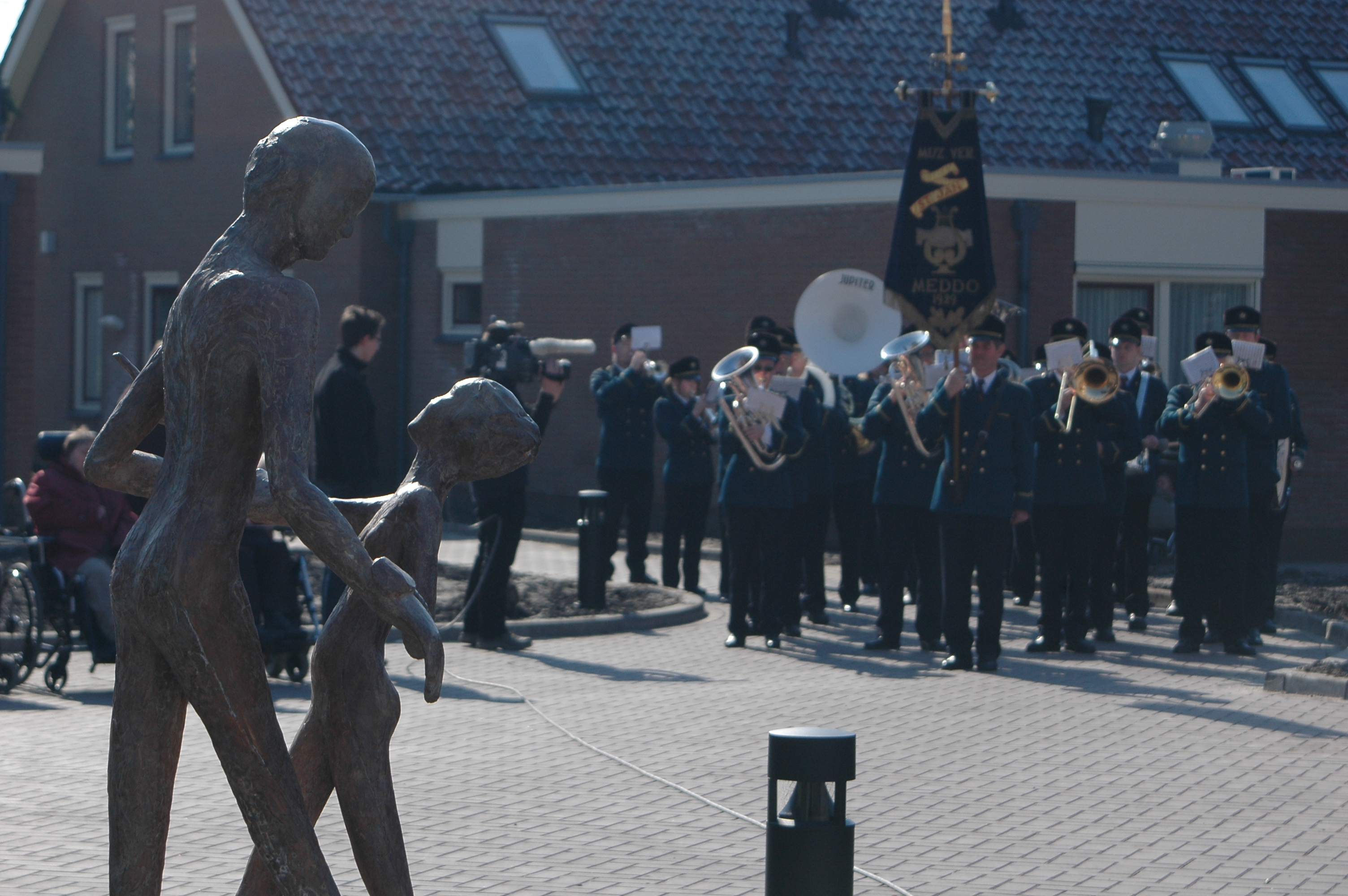 Het kind, lopend op de voeten van de volwassene, staat ook symbool voor het innerlijke kind dat in ieder mens schuilt. De herinneringen aan je jeugd worden steeds sterker naarmate je ouder wordt en er keren meer details terug. Dit ‘reminiscentie-effect’ is bij dementerende ouderen nog sterker. Zij leven soms geheel in hun jeugd, hoe pijnlijk dat ook kan zijn voor de omgeving. Ook die rolverwisseling van de oudere met het kind heb ik proberen uit te drukken in dit beeld. Het innerlijke kind dat ineens weer op de voorgrond staat.
